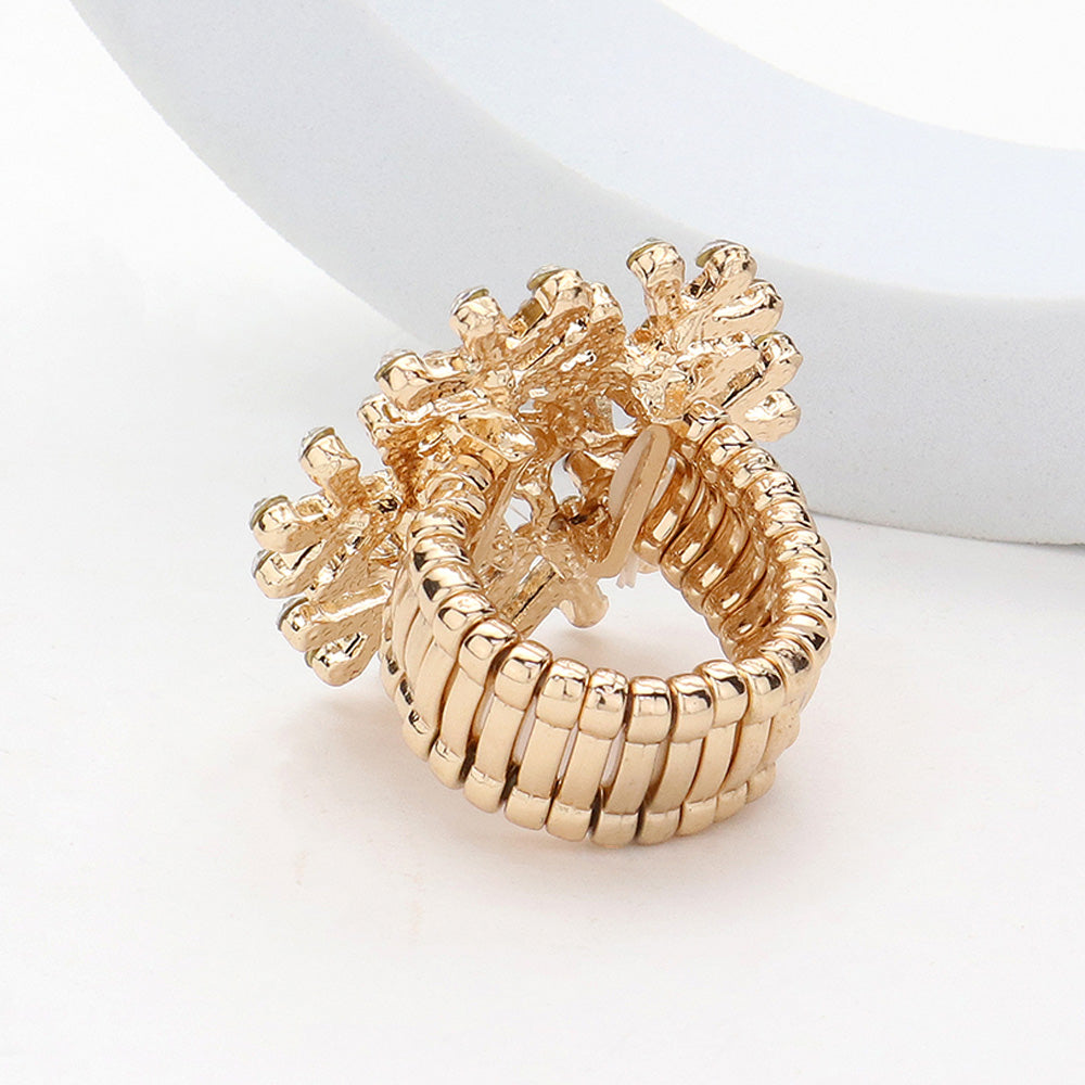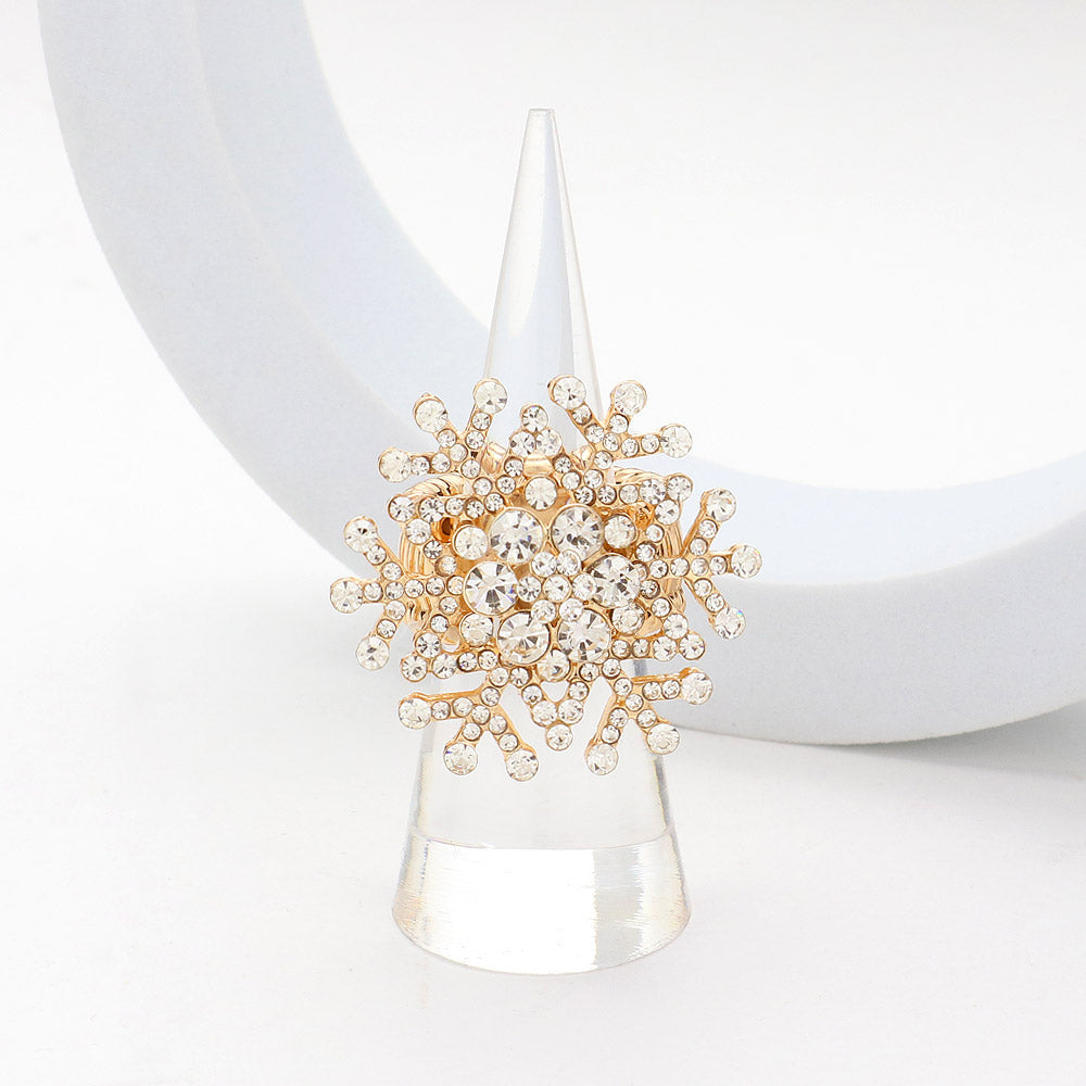 • Embrace the magic of winter with this gold crystal snowflake ring. Designed with intricate details and sparkling accents, it adds a luxurious seasonal touch to your style—perfect for holiday events, festive gatherings, or adding everyday shimmer with elegance.