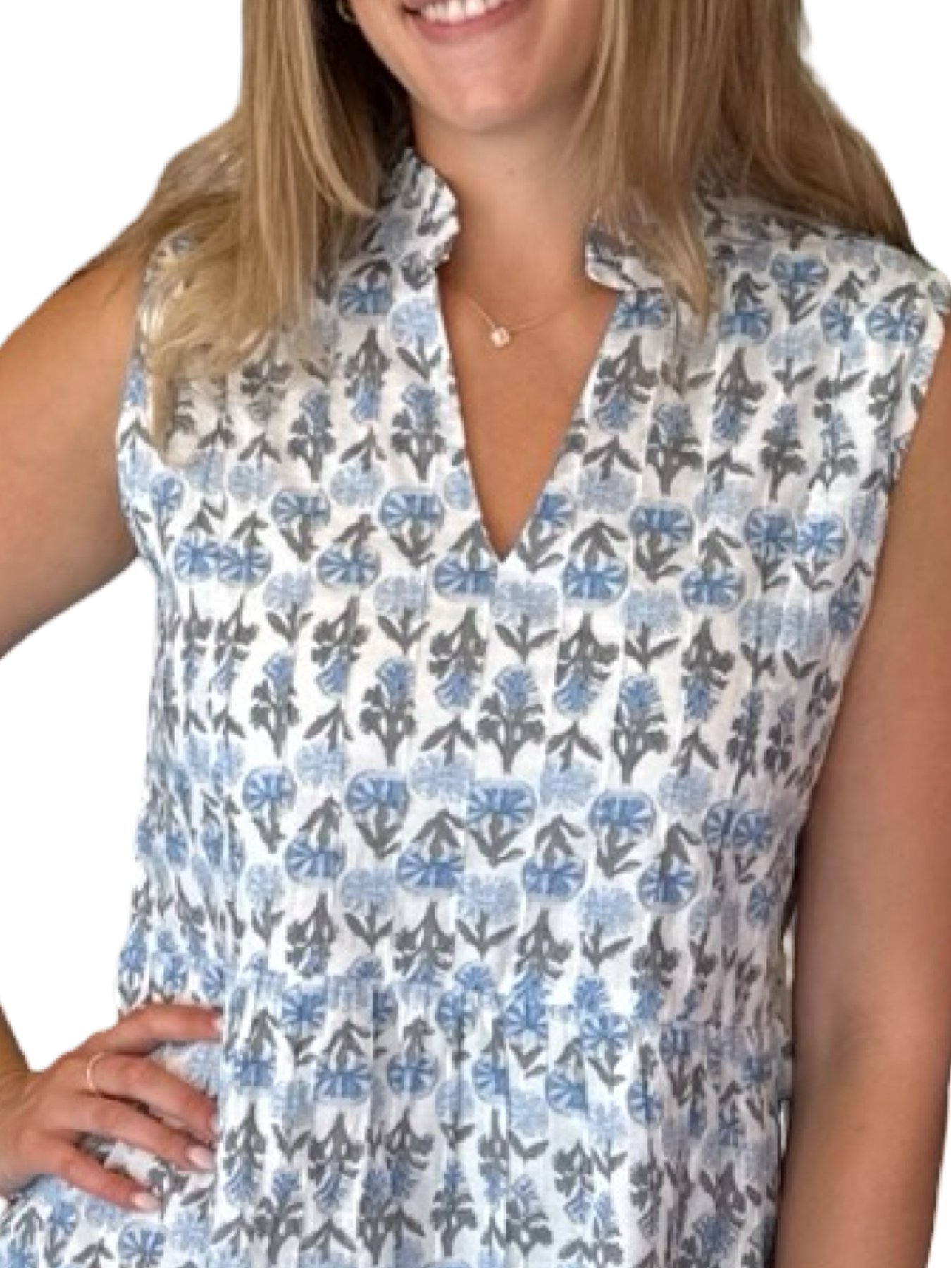 A warm weather staple, our Bennett lined cotton dress is sure to become an easy closet staple with endless possibilities for your warm weather adventures. Pleated fabric, side pockets and ruffle trim detailing make this a unique and easy to wear piece. Cold gentle cycle wash, line dry. Model is 5'9" wearing a size small.