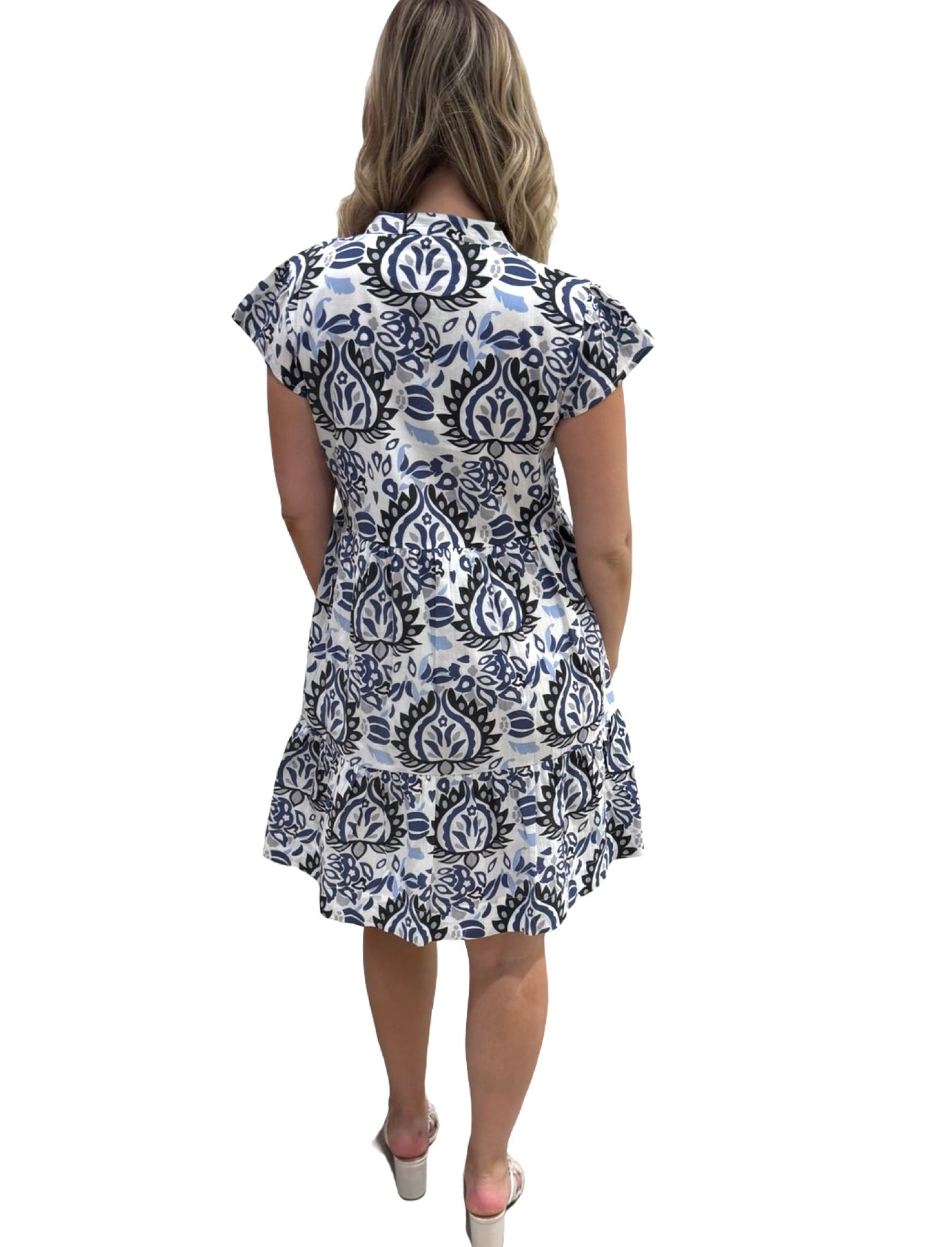 An easy over-the-head side pocket lined dress. A unique print design on soft cotton, this dress is a perfect style to wear for day to night activities. Model is 5'9” wearing a size small. Cold hand wash line dry.
