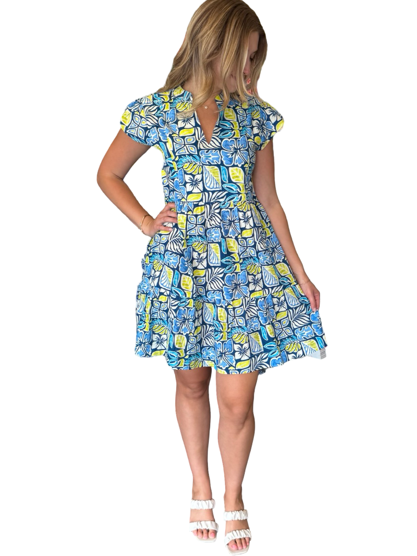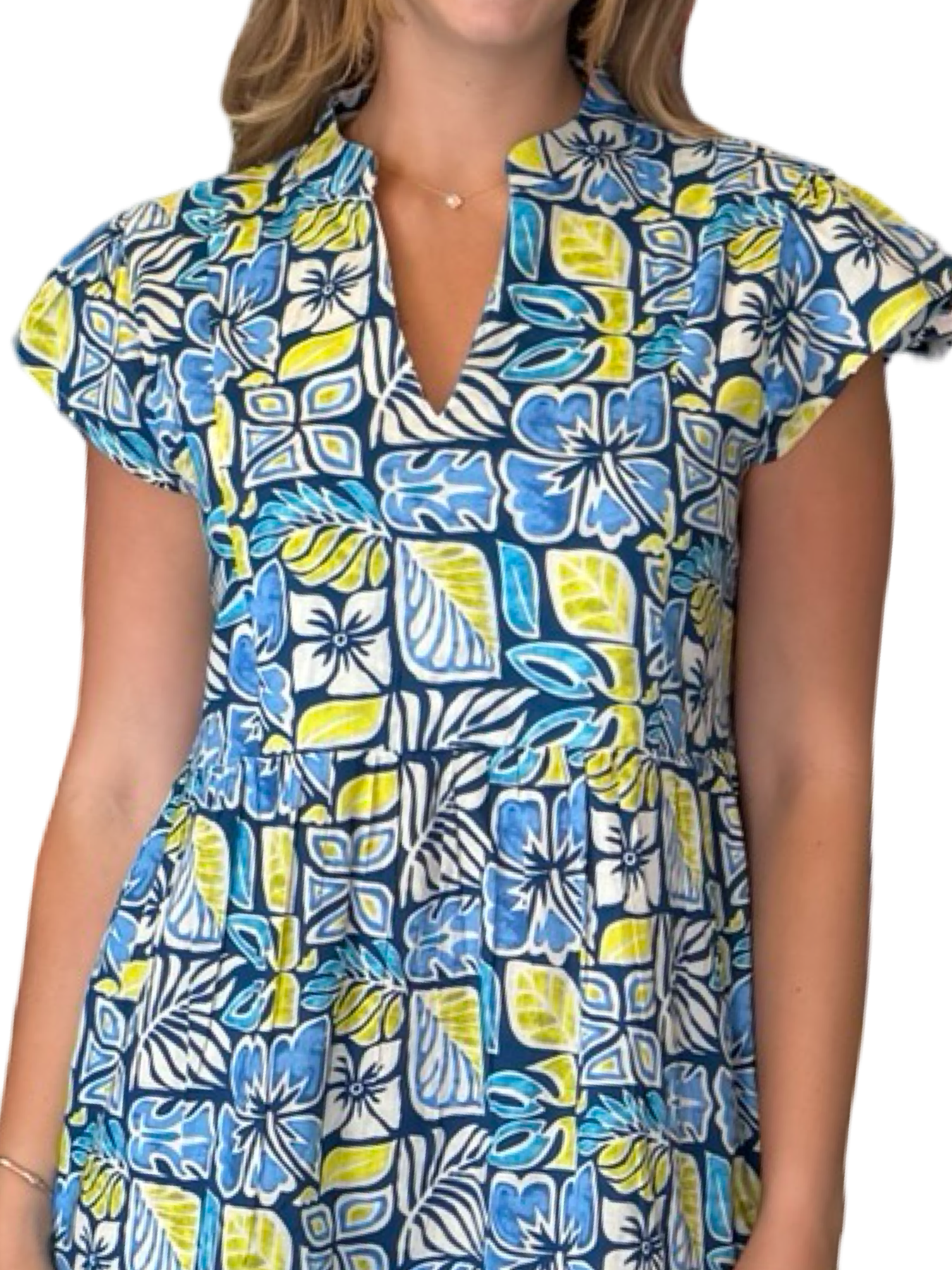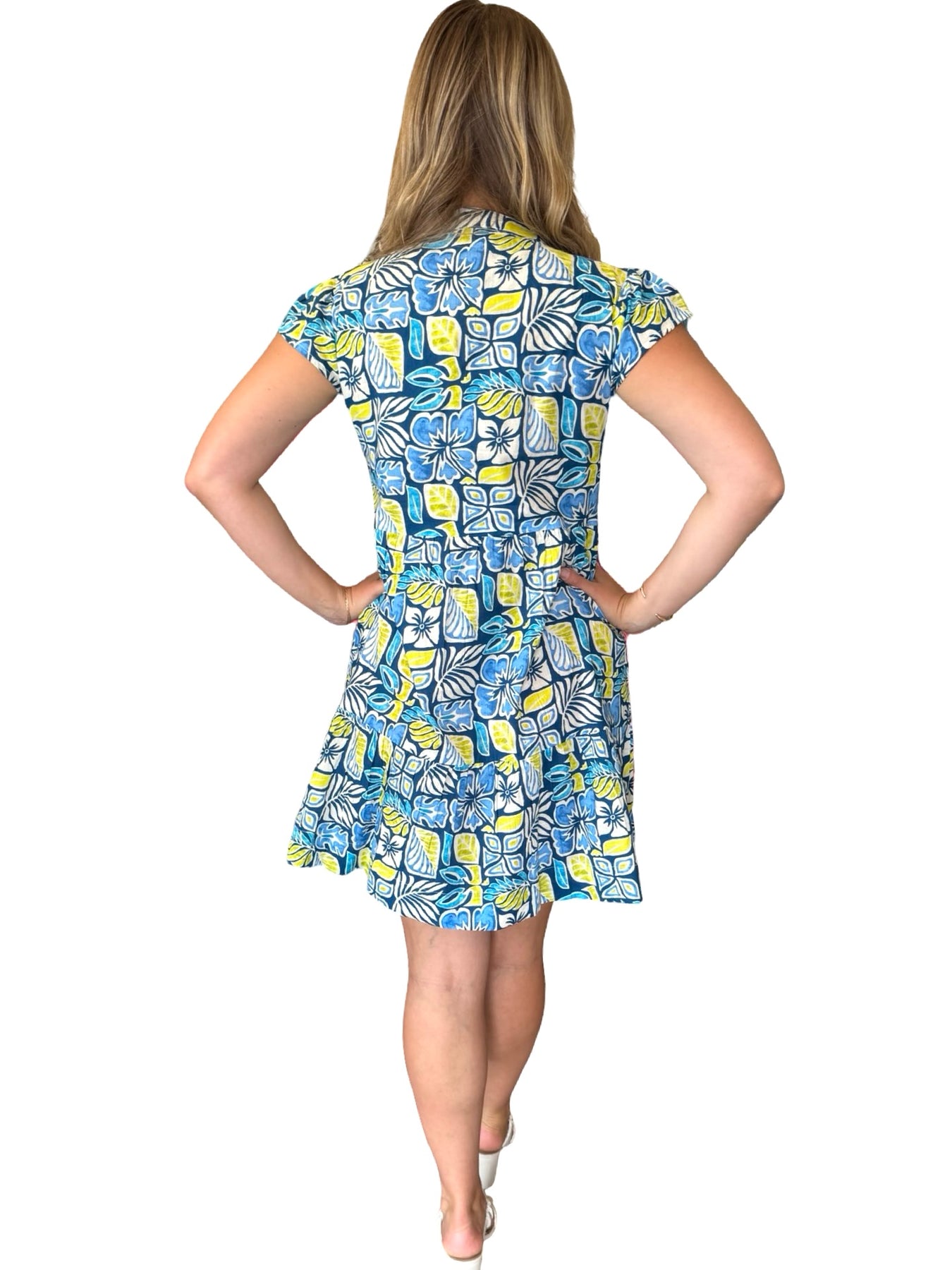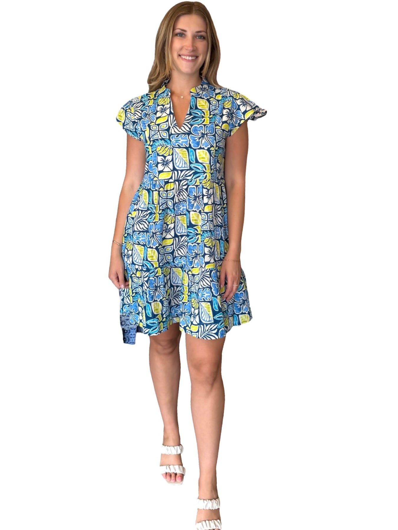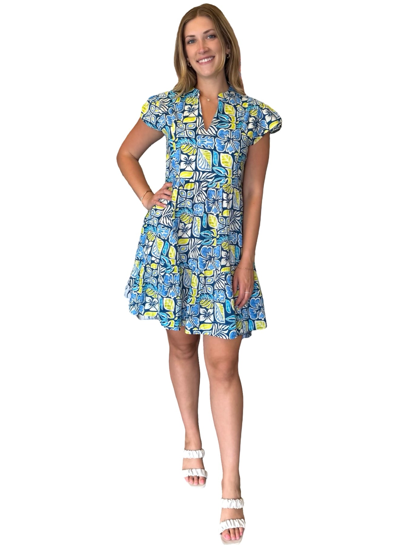 An easy over-the-head side pocket lined dress. A unique print design on soft cotton, this dress is a perfect style to wear for day to night activities. Model is 5'9” wearing a size small. Cold hand wash line dry.