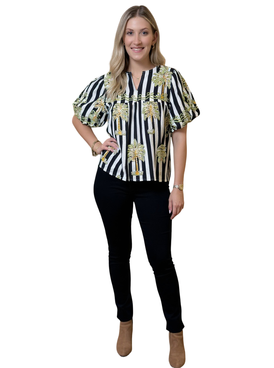 The Poppy Striped Palm Print Top in Black and White