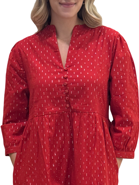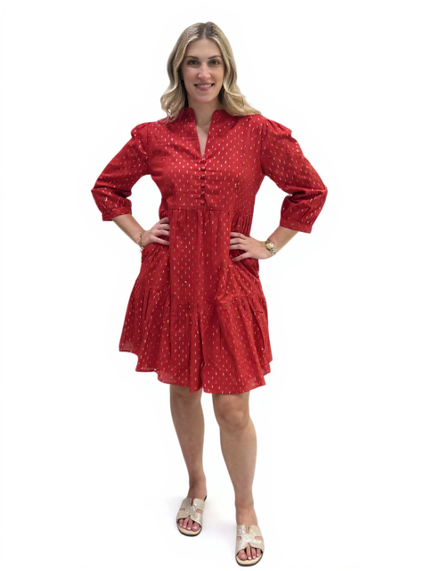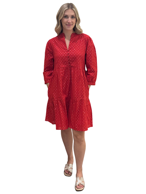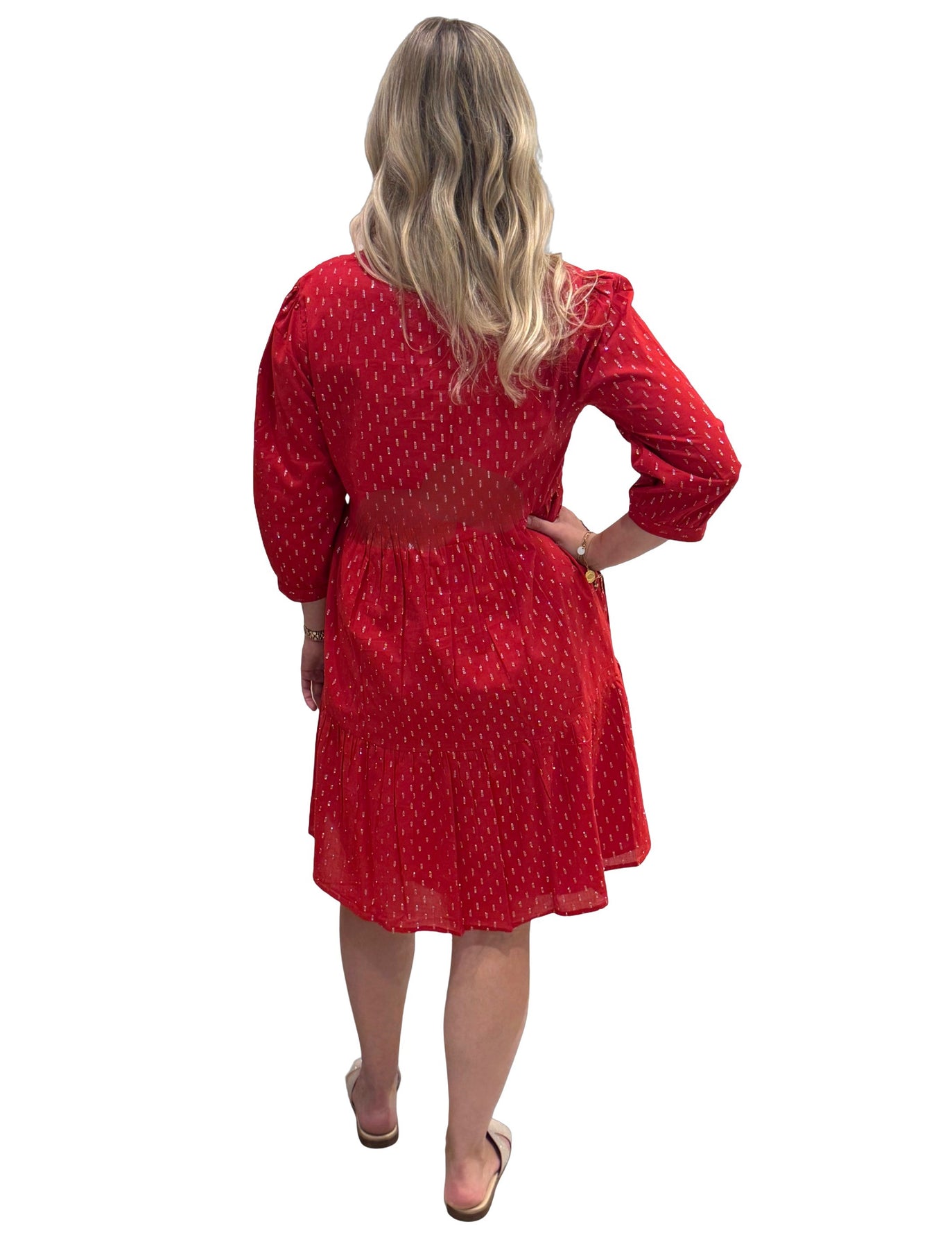 The Preston 3/4 Sleeve Dress in Red and Silver