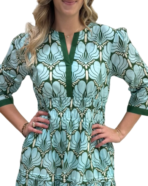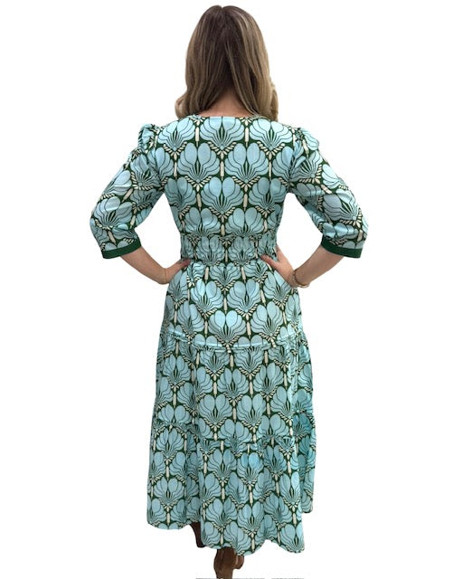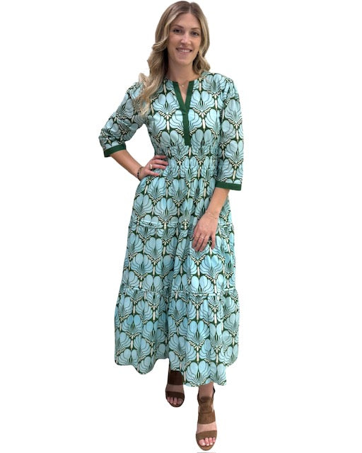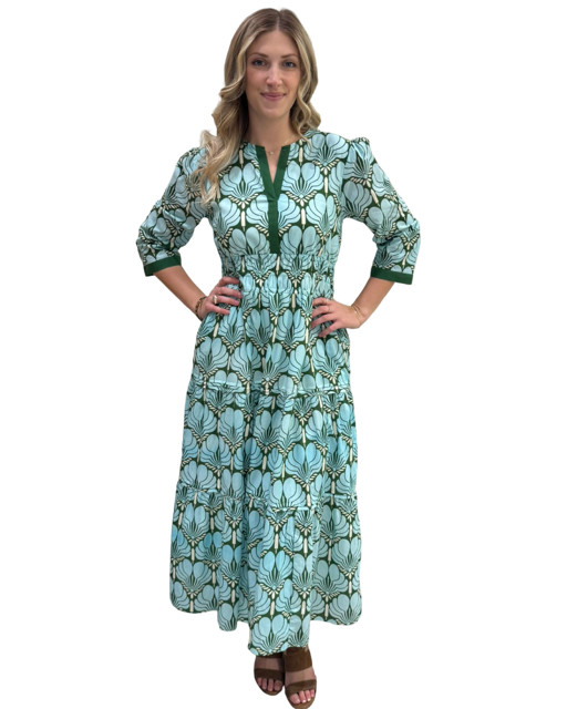 A beautiful longer length flattering dress, with a smocked waistline this 3/4 sleeve style is very flattering on everyone. Extremely versatile, this dress makes the perfect outfit, for wherever your day takes you. Model is 5'9” wearing an small.