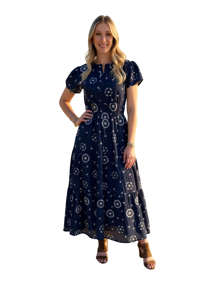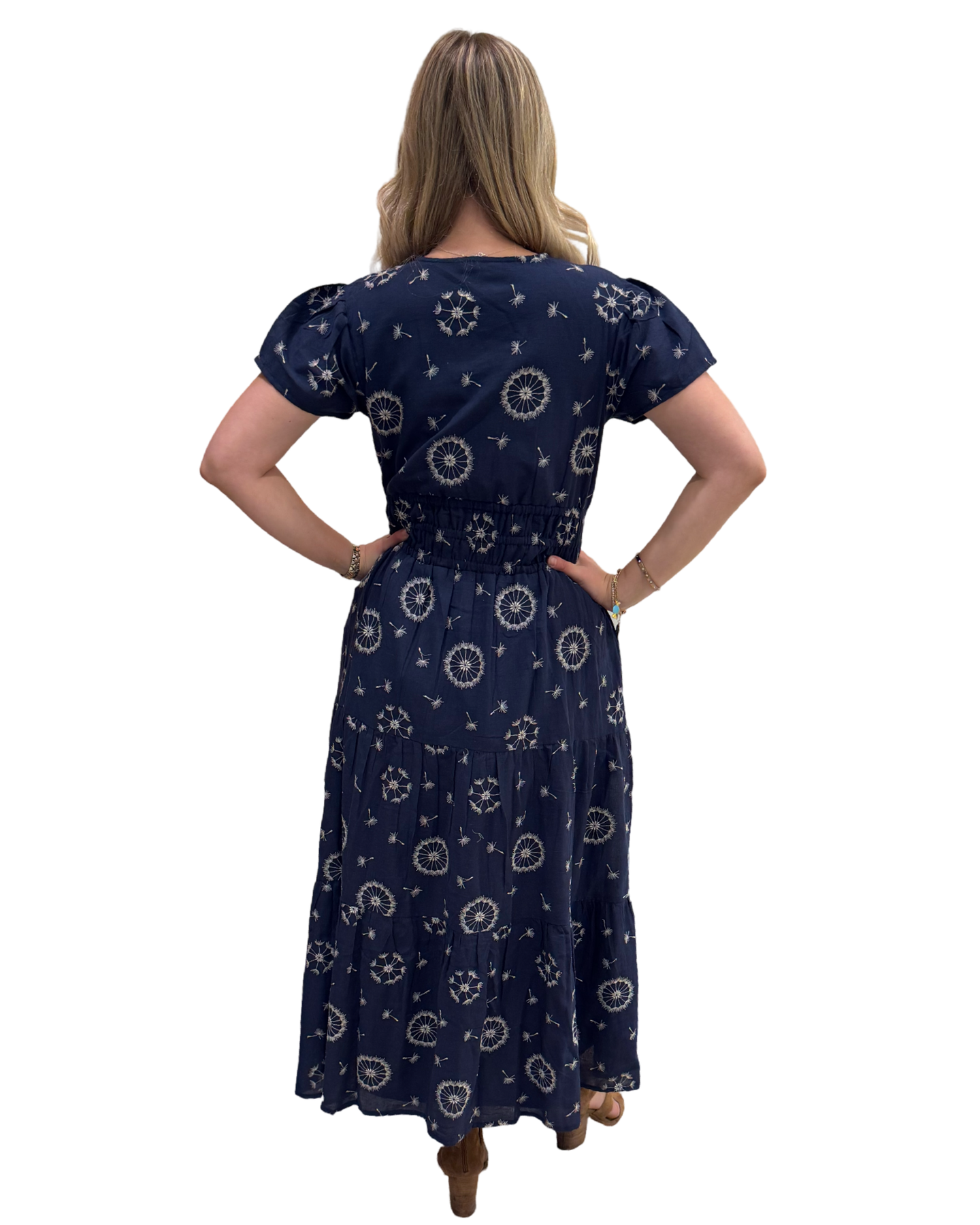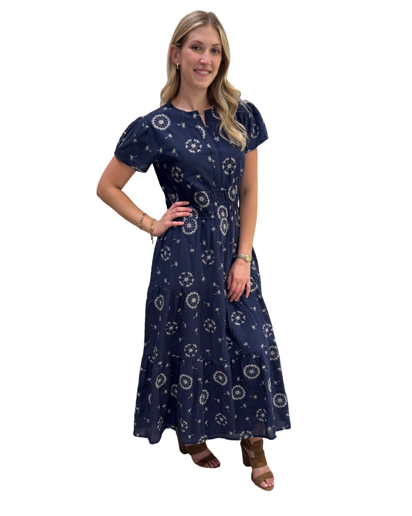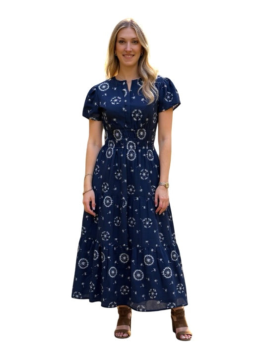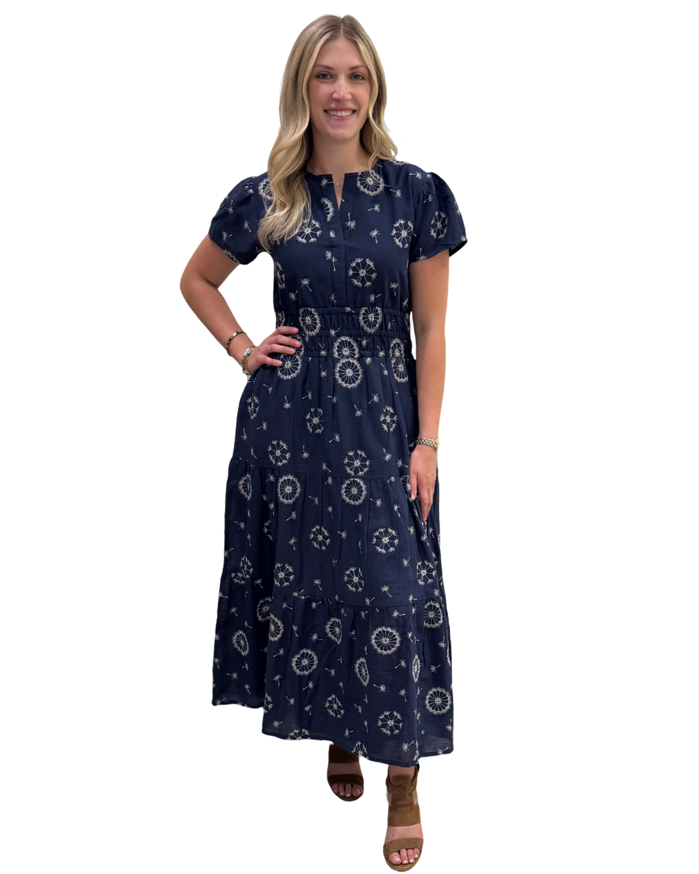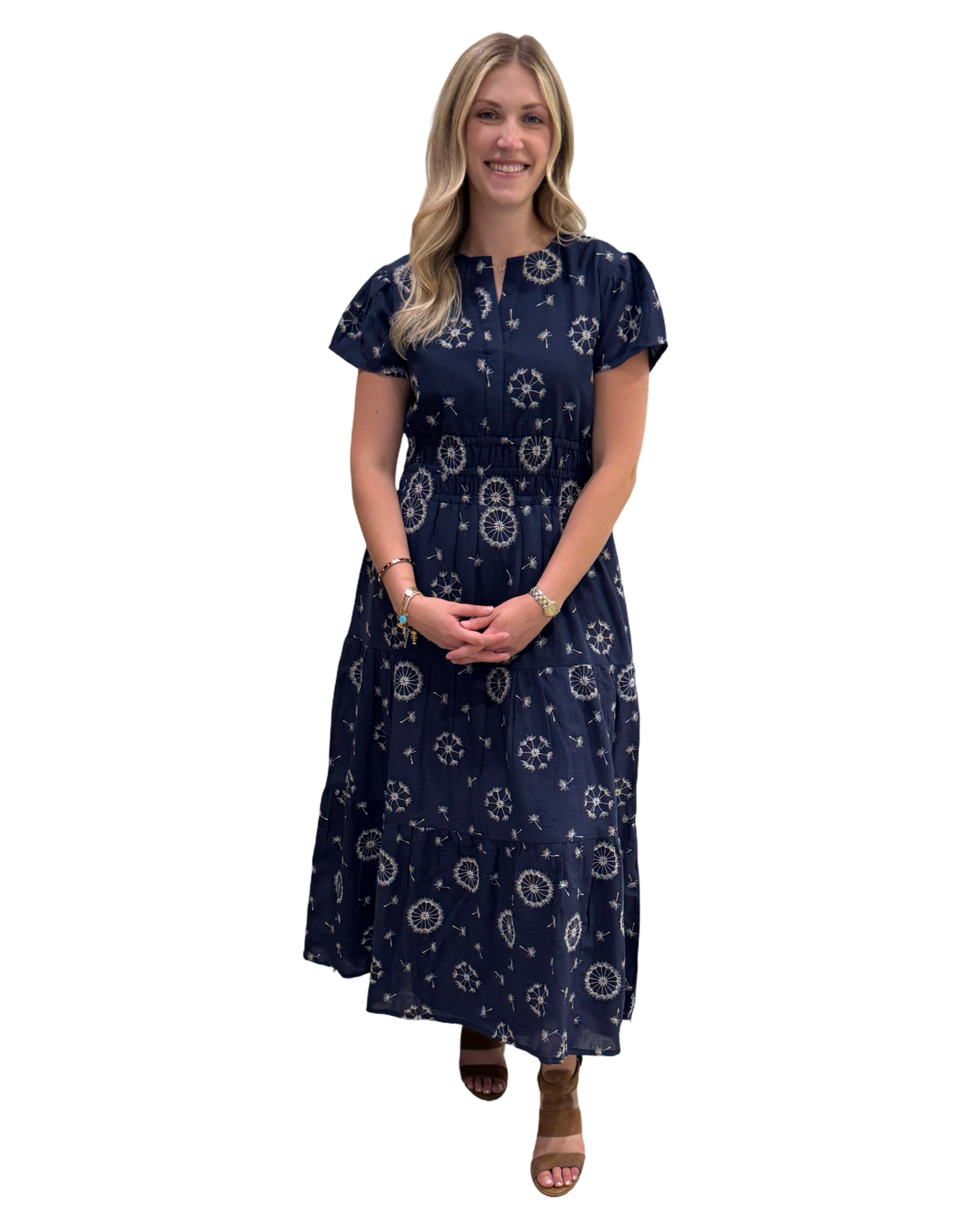 A beautiful longer length flattering dress, with a smocked waistline this style is very flattering with side pockets. Extremely versatile, this lined dress makes the perfect outfit, for wherever your day or evening takes you. Model is 5'9” wearing a size small.