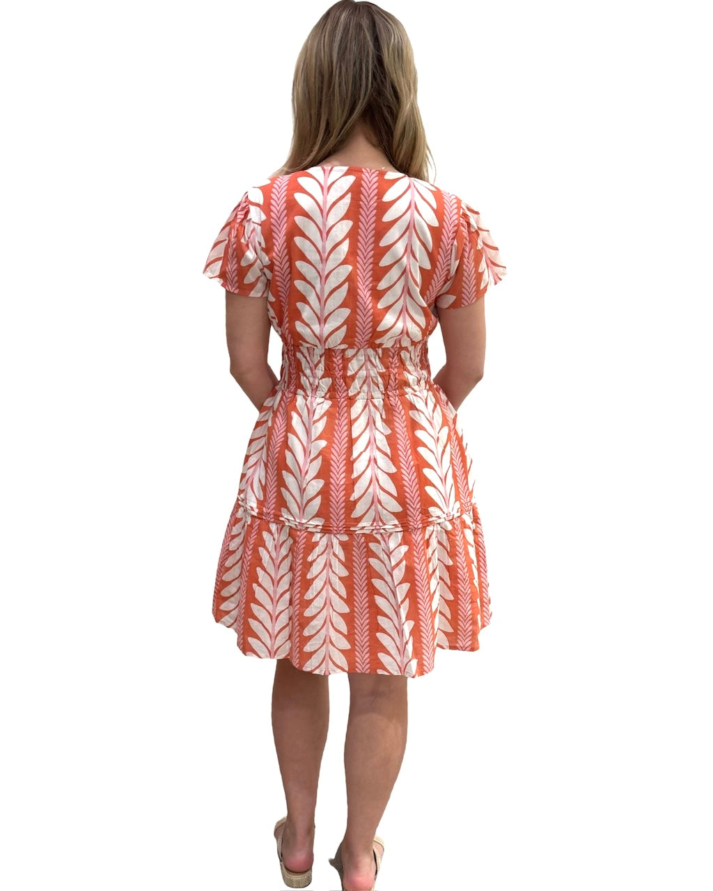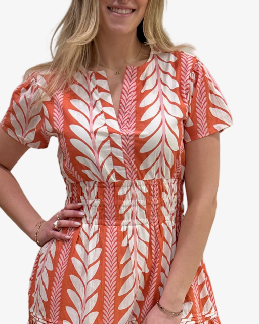 A beautiful flattering dress, with a smocked waistline this style is very flattering on everyone. Extremely versatile, this dress makes the perfect outfit, for festive parties and beyond. Model is 5'8" wearing an small.