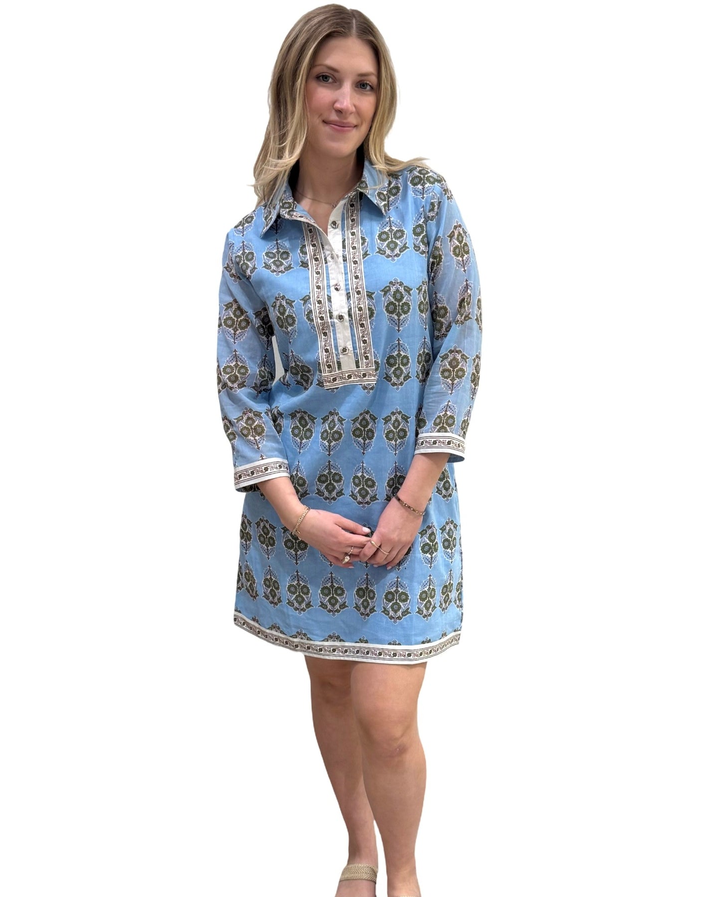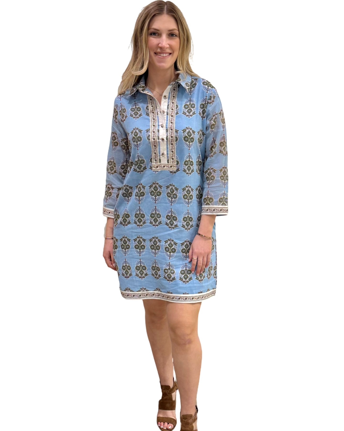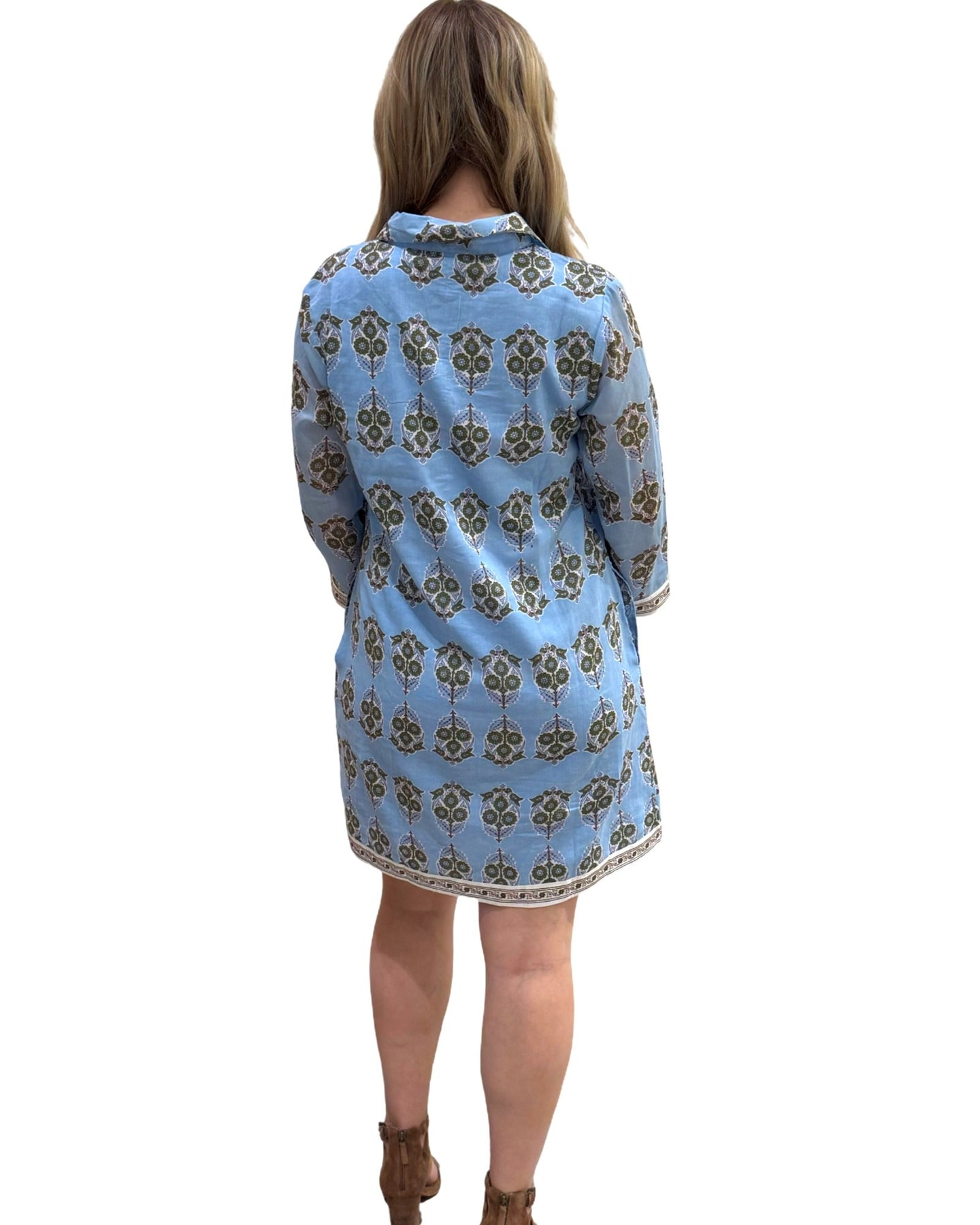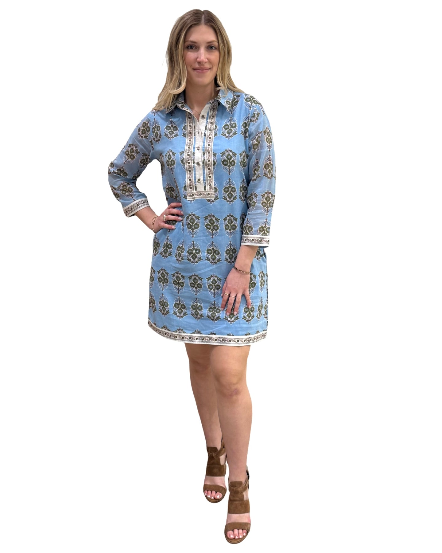 A versatile over-the-head shirt dress with side pockets. A beautiful streamlined classic silhouette in cotton with collar detail, self covered buttons and unlimited possibilities. Cold gentle wash line dry. Model in 5'9" wearing a size small.