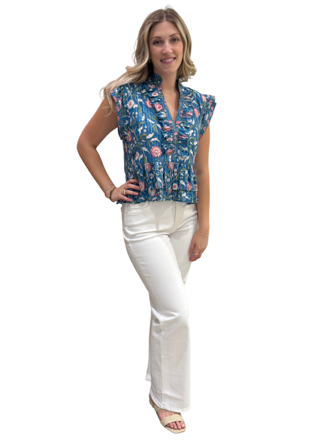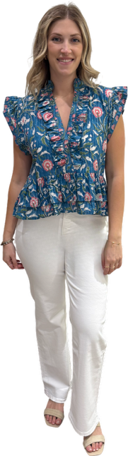 The Bella Flutter Sleeve Top in Blue Pink Metallic
